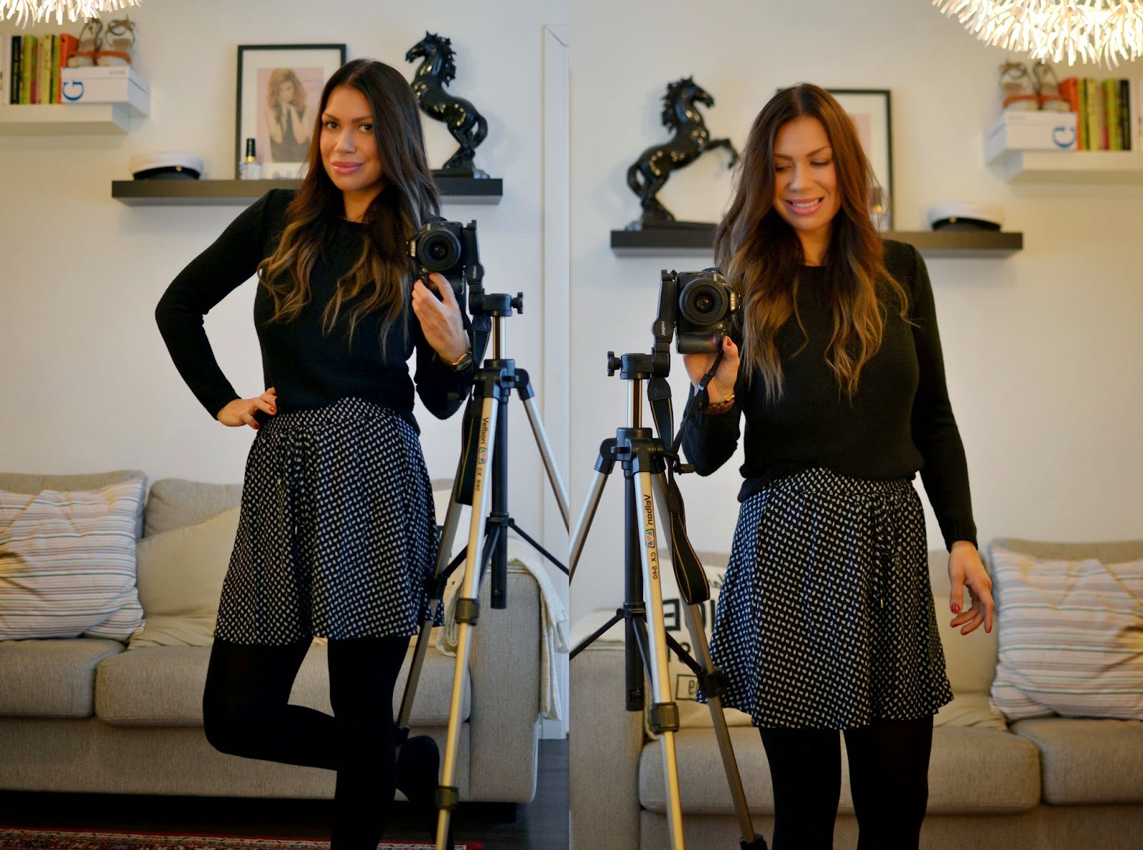 Postauksen kuvituksena toimii laiskannaisen asukuvat torstain asusta. Tuo hame on noussut yhdeksi ihan lemppariksi. Kuvio on ihan pientä paisleyta ja malli sekä materiaali ovat aivan ihania. Tuo kivaa piristystä kokomustaan asuunkin :-)